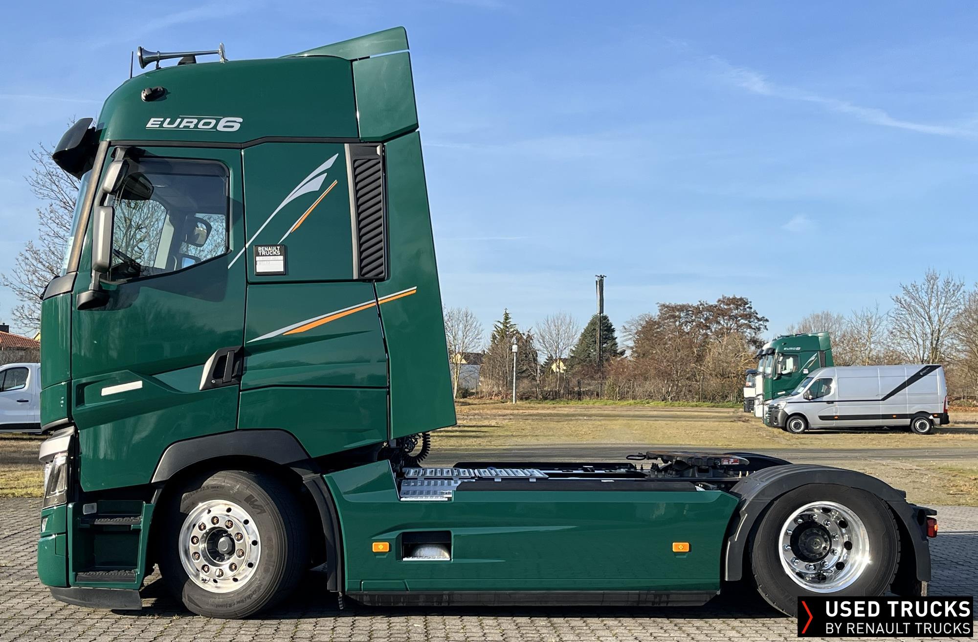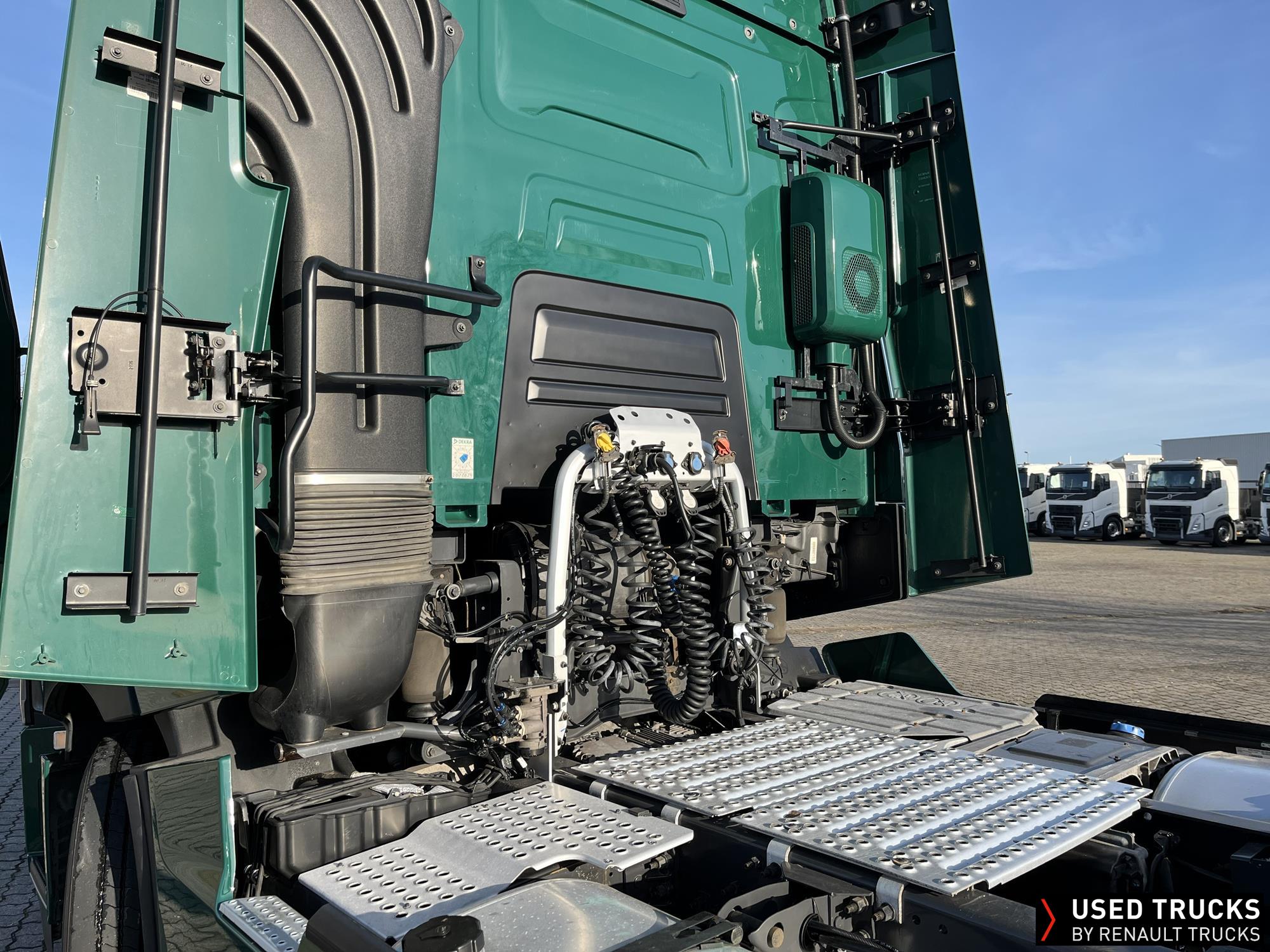 **Verkauf ausschließlich an Transportunternehmen innerhalb der EU / Sales exclusively to transport companies within the EU!**, **beheizbarer Dieselfilter**, **Kaltstarthilfe**, Höhe Sattelkupplung 150 mm - Montage tief, **Roadpad+**, Vorhang **Luxe** & Liege, **Kamera seitlich & Kamera Sattelkupplung hinten**, Vorrüstung Scheinwerferträger am Dach, **Integrallackierung Zugmaschine**