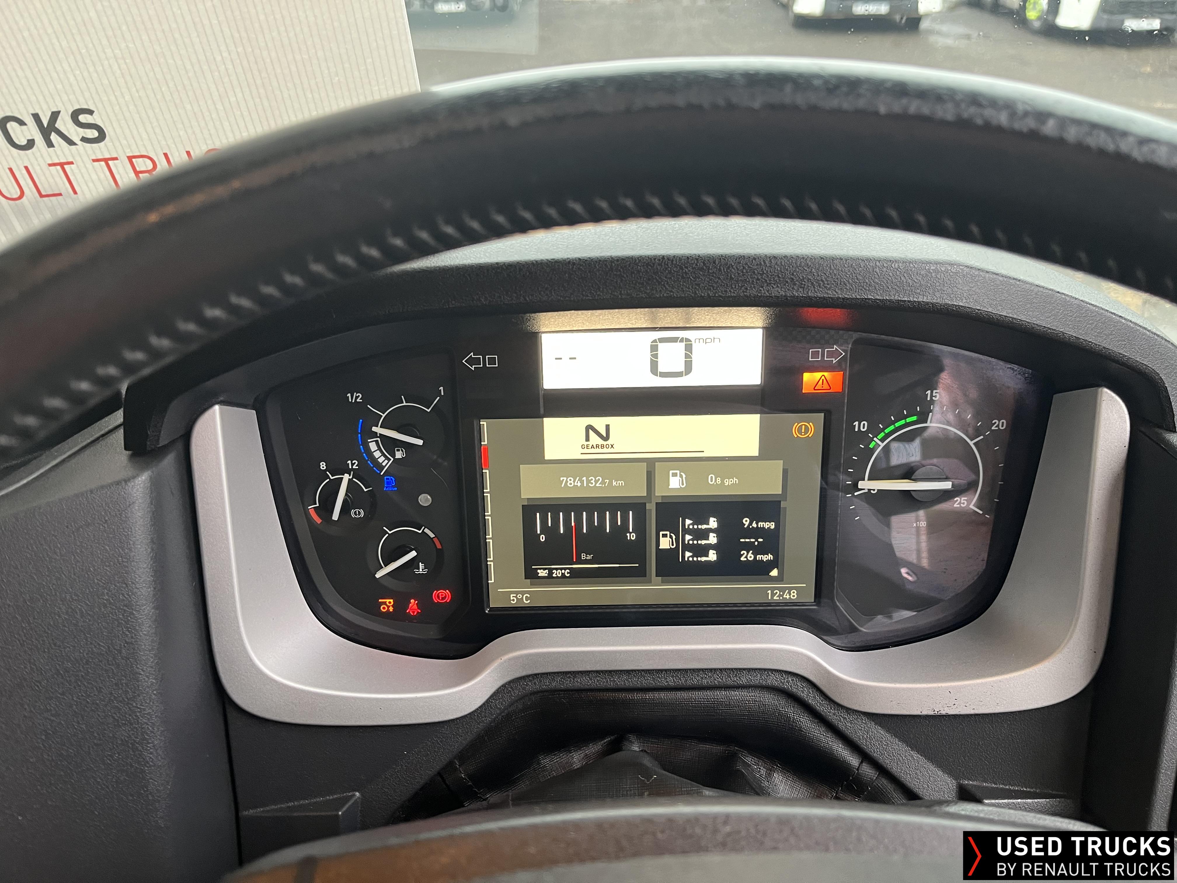 2019 (69) Renault T HIGH 520.26 TML 6x2 Tractor Unit, with just 784,132kms. T HIGH Flat Floor Sleeper Cab, 13 LTR 520 BHP Euro 6 Engine & Automatic Gearbox, Engine Brake, 4-Point Cab Air Suspension, Sunvisor, Cruise Control with Optiroll, Lane Departure Warning System, Emergency Brake Assist, Electronically Regulated Comfort Air Conditioning, Full Air Deflector Kit, Electric Windscreen Sunblind, Drawer under Bunk with 40 Litre Fridge, Microwave, Alcoa Dura bright Alloy Wheels, LED Cab Lighting, Remote Control in Bunk Area for Cab Controls, FM/DAB+ Radio with Bluetooth, USB Port & Jack Socket, 4 Loudspeakers & 2 Tweeters. One-Touch Electric Windows, 12/24V Sockets, Sliding 5th Wheel, LED Rear Lights, LED Day Running Lights & LED Work Light, Front Fog Lights, Automatic Lights & Wipers.